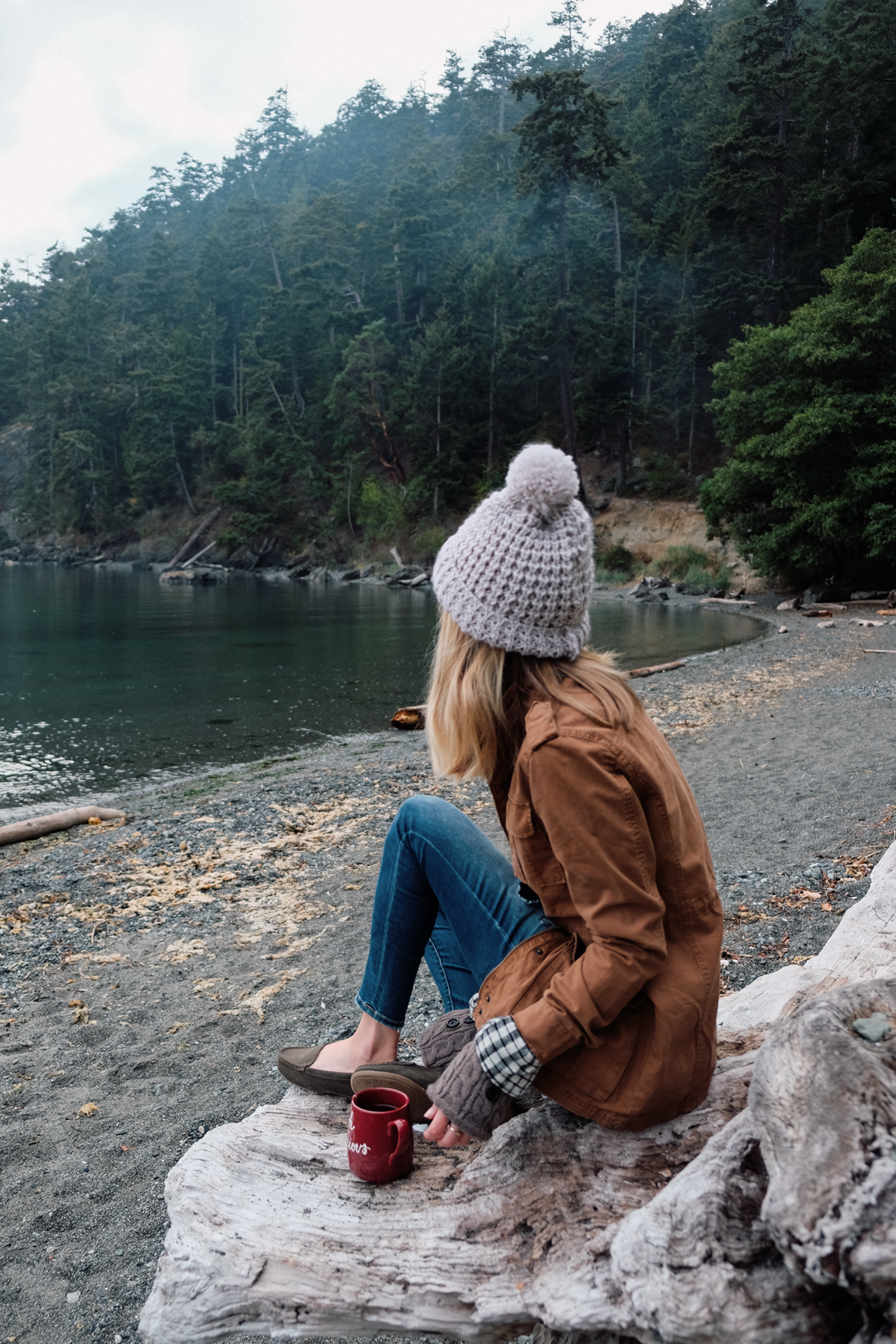 One of my best fashion tips for Target? Shop around in other sections! I picked up this cozy beanie and boot cuffs in the dollar section—I turned the boot cuffs into arm warmers to add a cozy touch to this cargo jacket. It was the perfect look for camping with my family, especially with pumpkin spice tea (a very seasonally-appropriate selection from Tazo) along the beach as the sun came up.