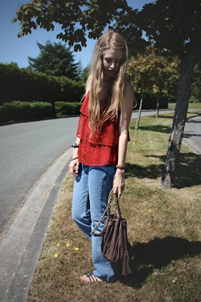 Ana chiffon tank, vintage Jordache denim, random sandals, Donna bucket bag c/o Cut n' Paste