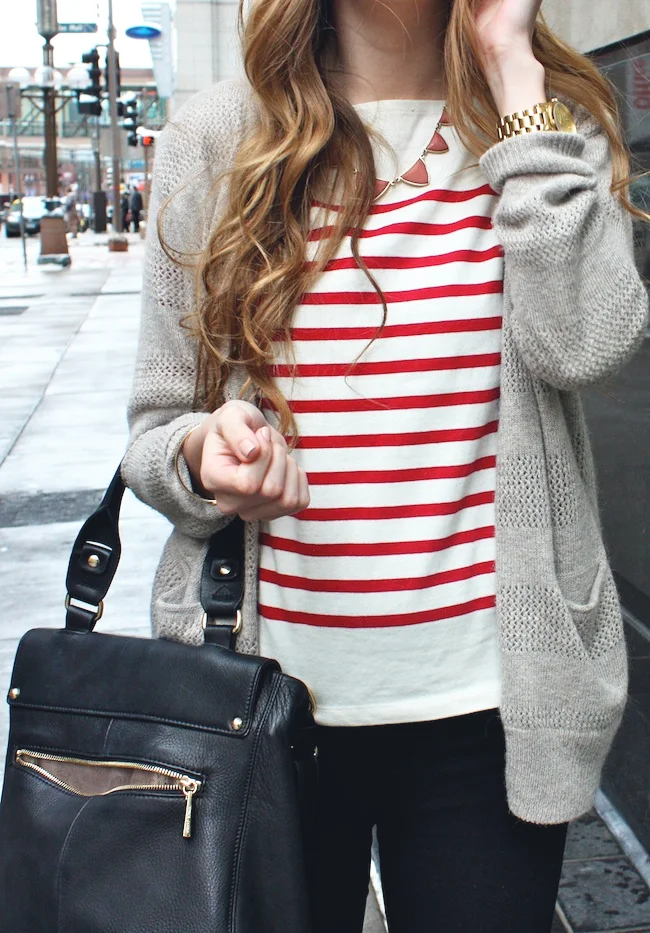 This top and necklace are a combination I've had in mind for awhile, but I finally pulled the look together with a cozy cardigan and comfortable pants as a no-nonsense look while I've been sick at work. Being That Person coughing around the office is no fun, so I'm glad the weekend is finally here so I can recuperate. Last night, I got to see Muse live at Target Center (!!!) which made for a night to remember; it was beyond words, my mind is still blown! I'm excited to do more apartment shopping + see this lady over the weekend. See you back here on Monday!
