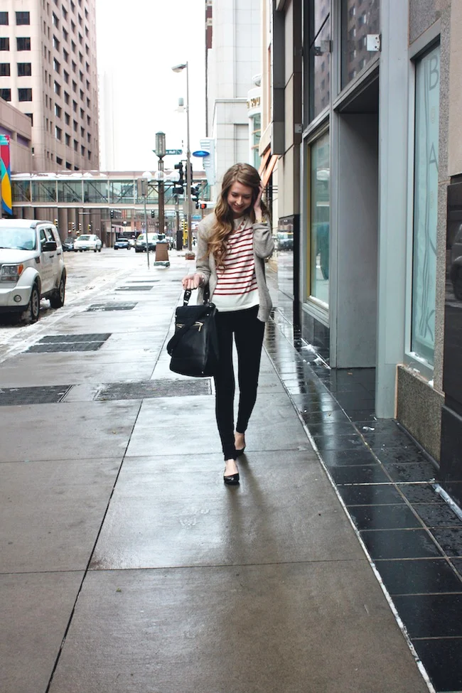 F21 top and cardigan, J.Crew Pixie pants, Target flats, Vince Camuto handbag, Bauble Bar necklace