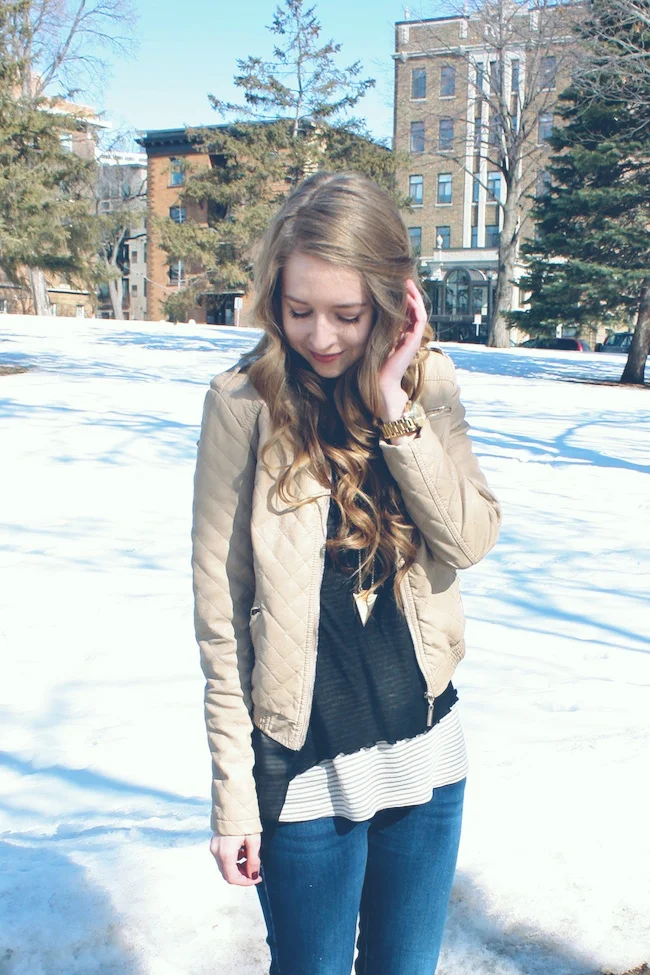 Sometimes you'll find me in all black, sometimes you'll find me in all beige, and once in awhile, you'll find me in a mix of my two favorite neutrals. Sneakers were the perfect finishing touch to a look that was made for Saturday brunch and park adventures. Woke up to a nasty snowstorm this morning which made for a fun Monday commute...but Starbucks and Girl Scout cookies are an easy fix for that!
