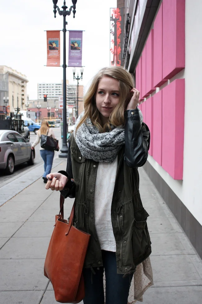 It's the time of year when throwing on a coat before you run out the door won't cut it anymore. My fifteen-minute walk to work is a little less than bearable without a knit hat, giant scarf, and sleeves I can pull down over my hands. I bundled up appropriately on this dreary Monday. The best kind of day.