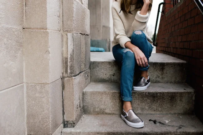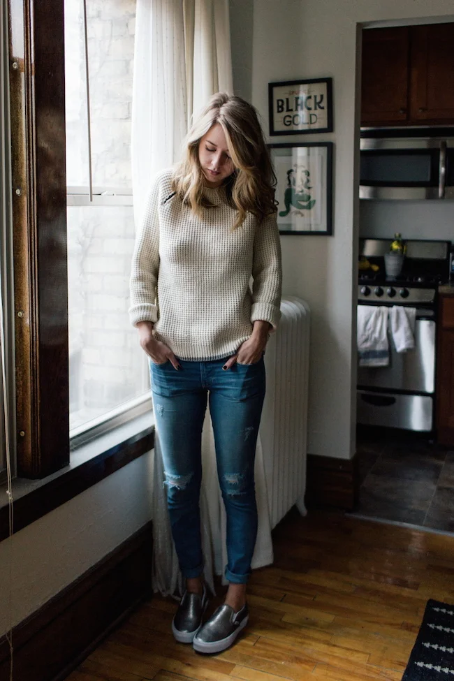 Vans sweater, KUT denim, Vans sneakers, Vans sweatshirt, JustFab denim, Vans sneakers, Free People hat