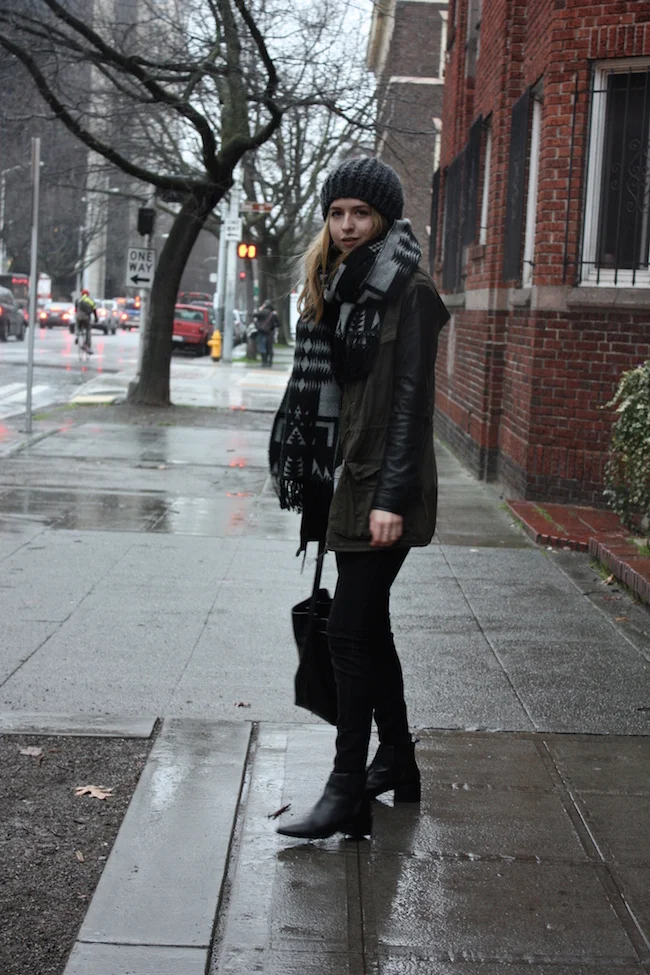 Aritzia coat, American Eagle hat, SIX scarf, Wessley NYC handbag, J.Crew pants, Zara boots (ON SALE!!!)