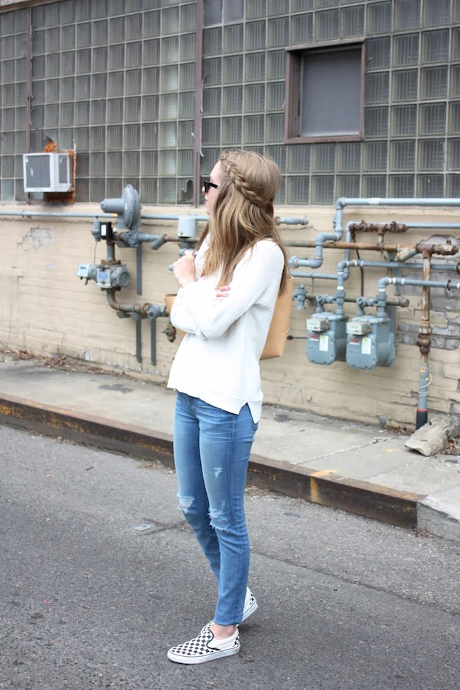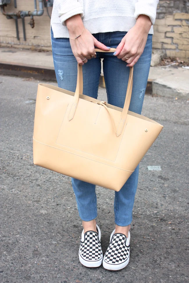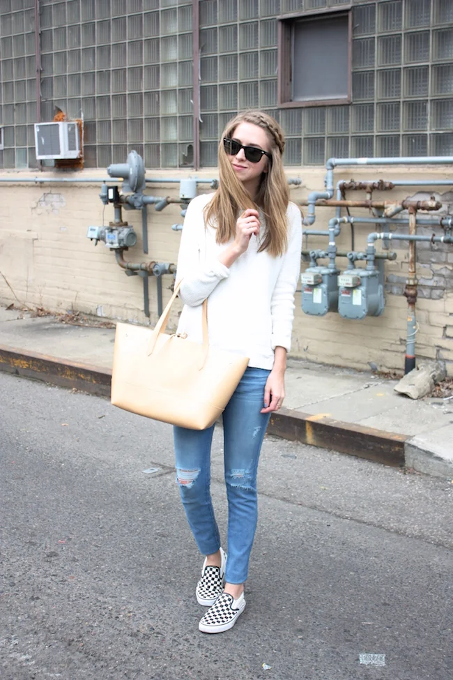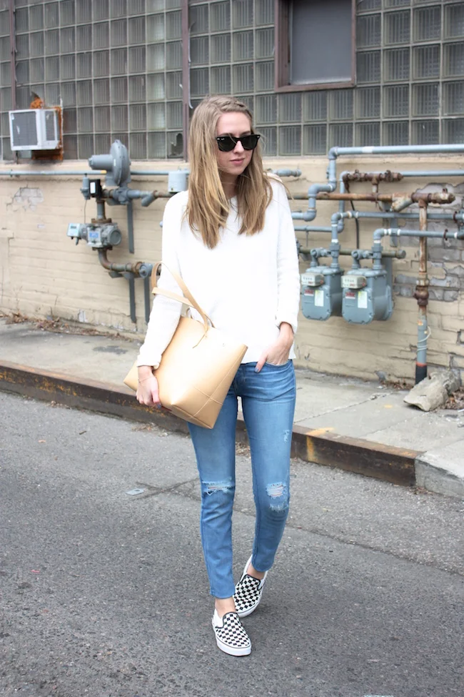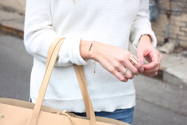 Madewell sweater and rings, A+C denim, Vans slipons, J.Crew tote, Ray-Ban sunglasses, SBG Designs bracelet